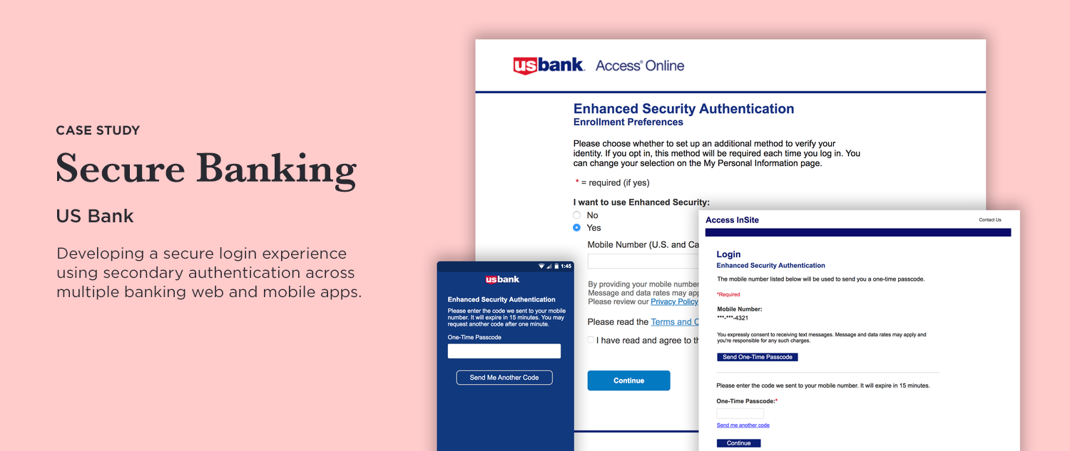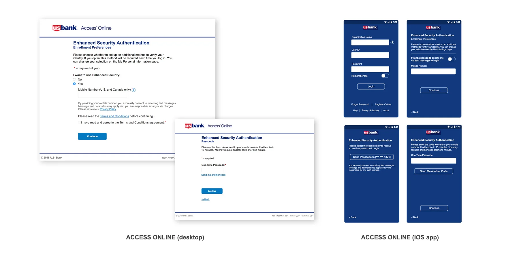 With today’s increased concern of privacy and protecting people’s data, US Bank’s Corporate Payment System saw the need to create a more secure login process for clients that use our corporate banking web applications. The request was to implement multi-factor authentication on the web portal that then grants access to our various banking apps. The pages are all based on legacy code, so we needed to ensure that the flow is simple and adheres to established legacy patterns.